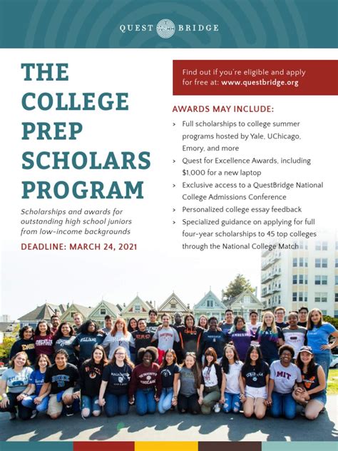 QuestBridge College Prep Scholars opens doors to a world of possibilities. By participating in the program, students gain access to college application workshops, essay feedback, and mentorship opportunities. Additionally, they have the chance to attend college fairs and explore various colleges and universities. The program also offers financial aid information and guidance for students and their families.